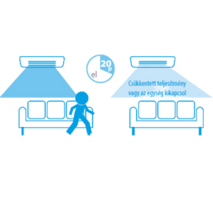 A jelenlét-érzékelő lehetővé teszi, hogy a levegőt a személyektől eltérő irányba terelje. A padlóérzékelő képes érzékelni a padló hőmérsékletét, ezáltal biztosítja az egyenletes hőelosztást a mennyezet és a padló között.