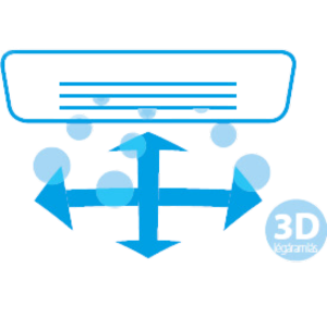A 3D légáramlás funkció horizontálisan és vertikálisan is képes irányítani a berendezés levegő áramlását. Ennek következtében kimagasló levegőelosztás érhető el, továbbá ez a funkció lehetővé teszi, hogy megválasszuk a légáramlás irányát.